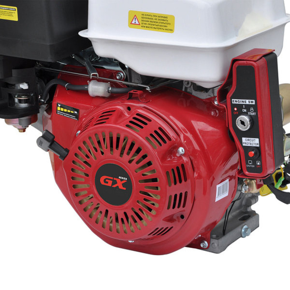 Четырехтактный одноцилиндровый бензиновый двигатель является аналогом двигателя Honda. Система зажигания - транзисторная. Тип смазки - моторное масло SAE 30, 10W-40. Система смачивания - разбрызгиванием. Датчик контроля уровня масла. Крышка топливного бака с резьбой.